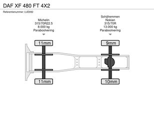 Első tengely: Gumiabroncs mérete: 315/70R22.5; Maximális tengelyterhelés: 8000 kg; Tengelyek gyártmánya: Michelin; Gumiabroncs profilja balra: 11 mm; Gumiabroncs profilja jobbra: 11 mm